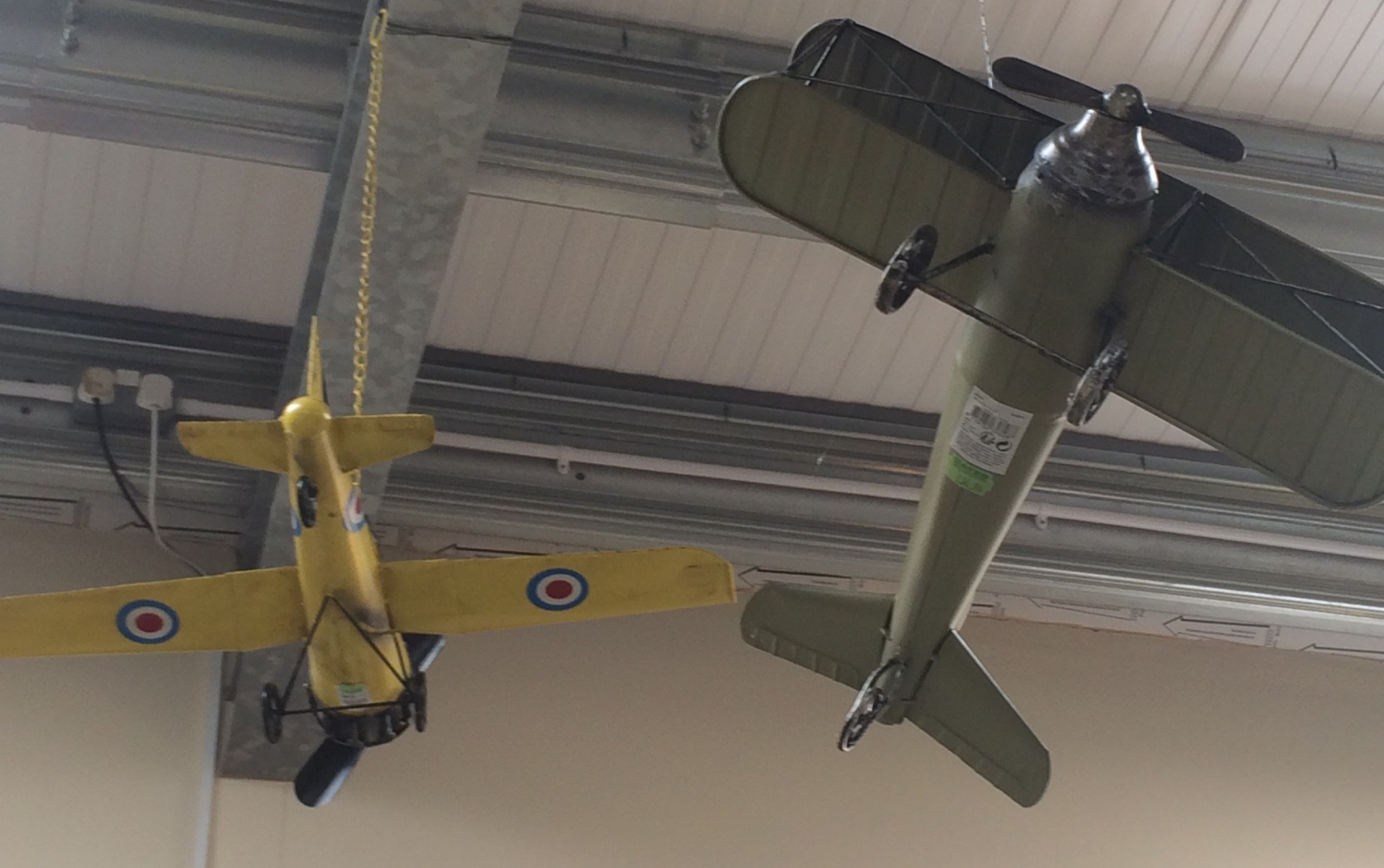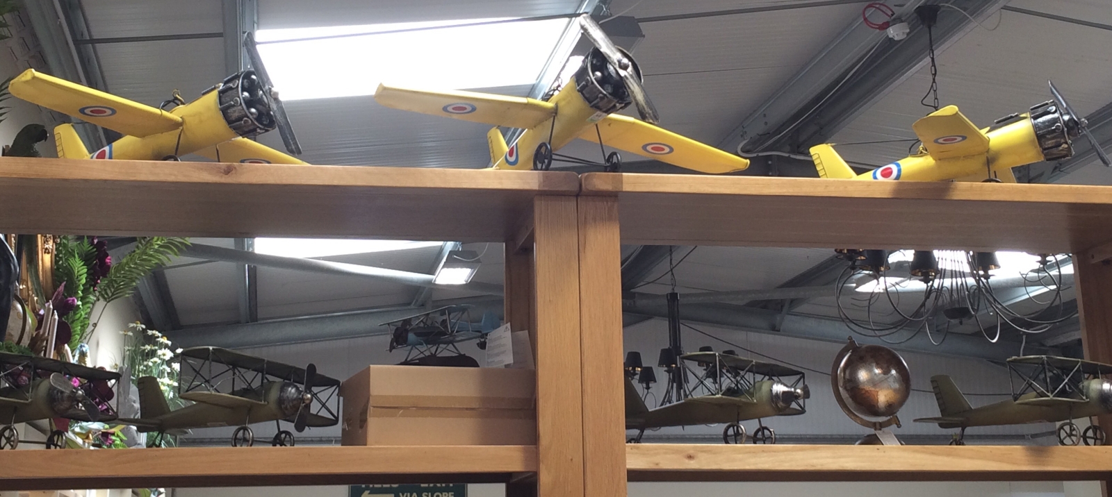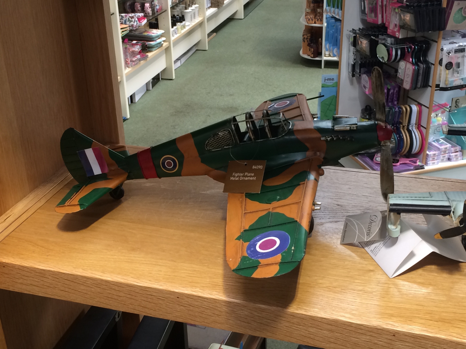 A local large Garden Centre has taken to selling, what they call, "Fighter Plane Metal Ornaments".