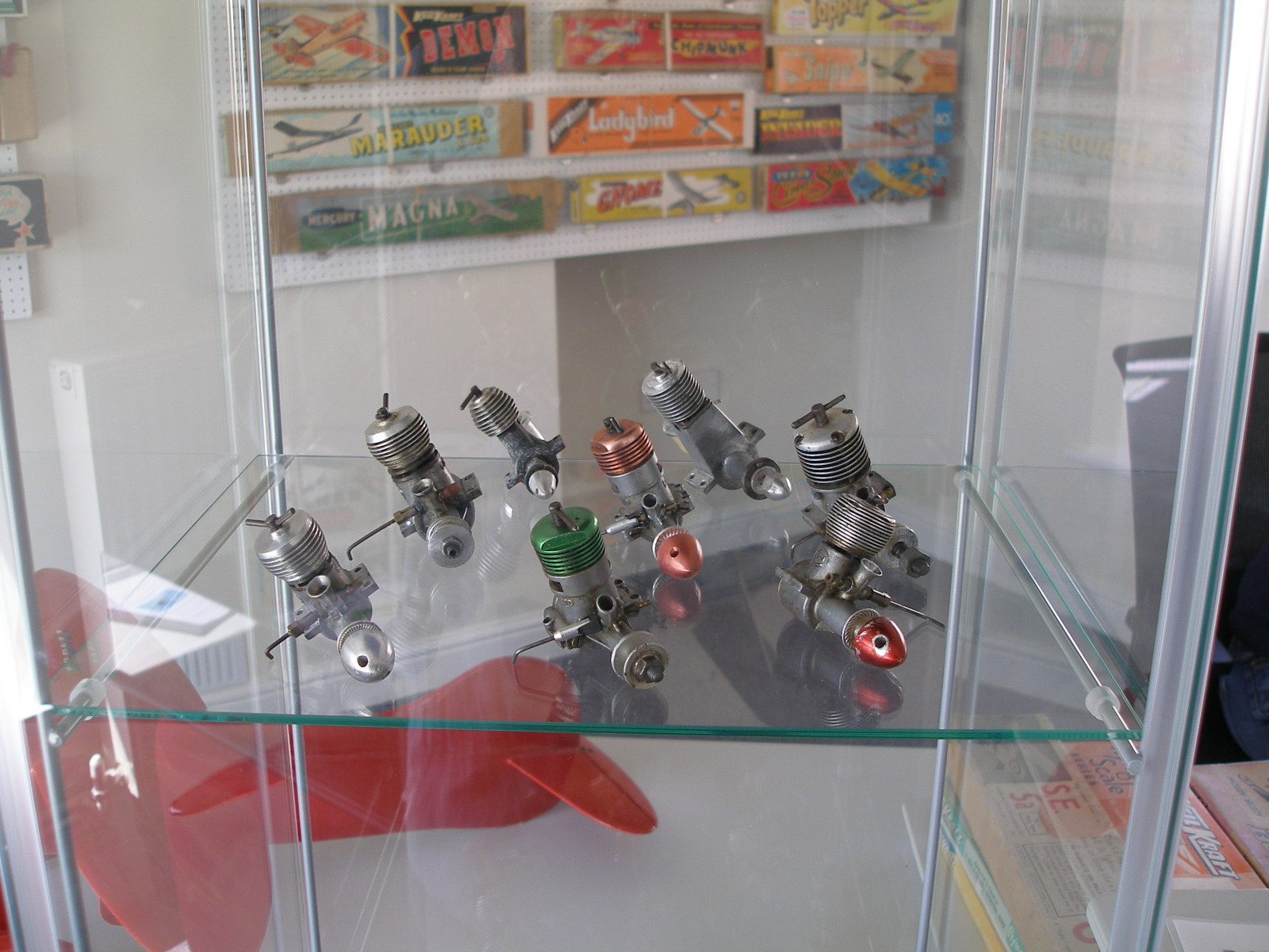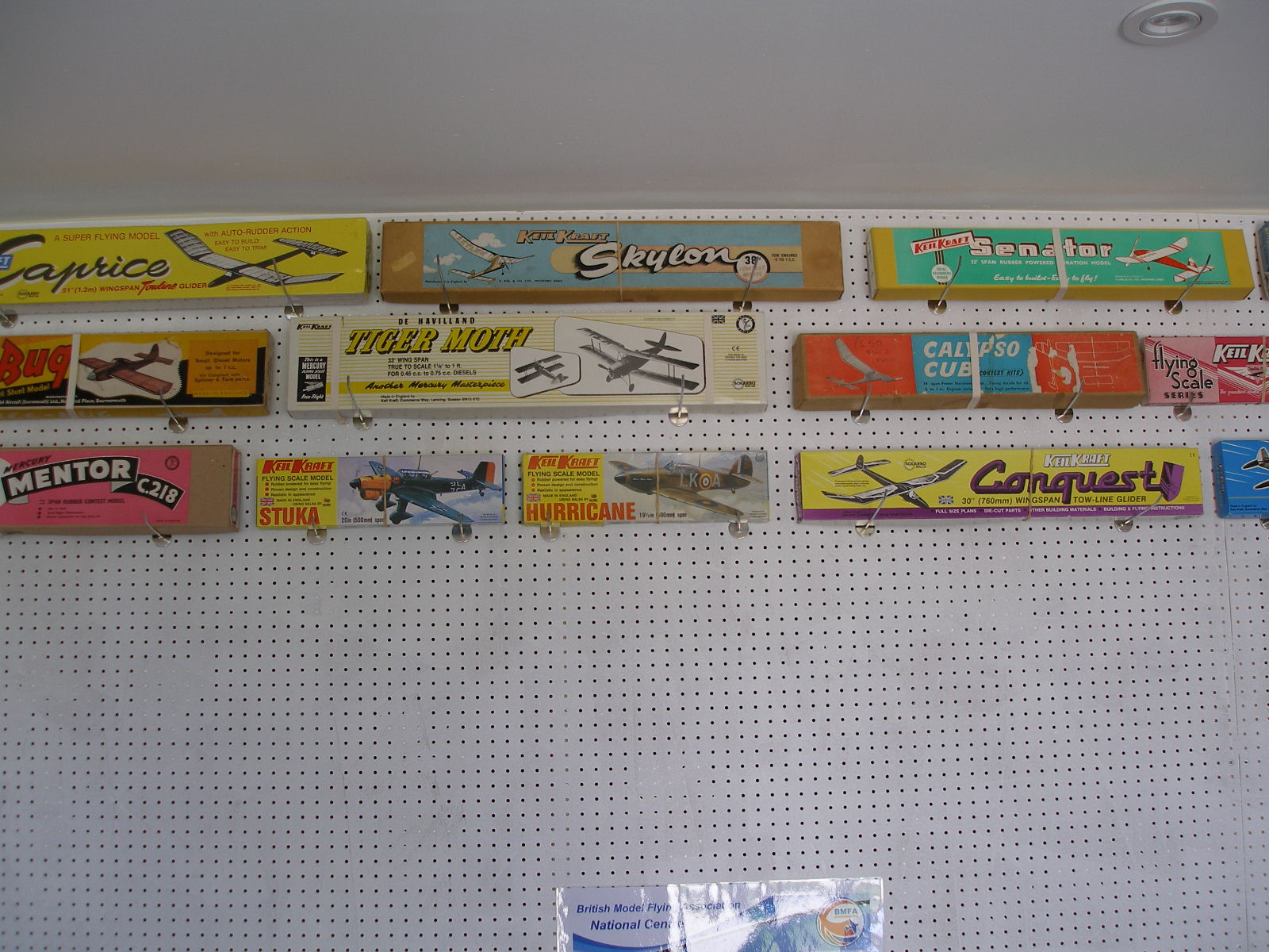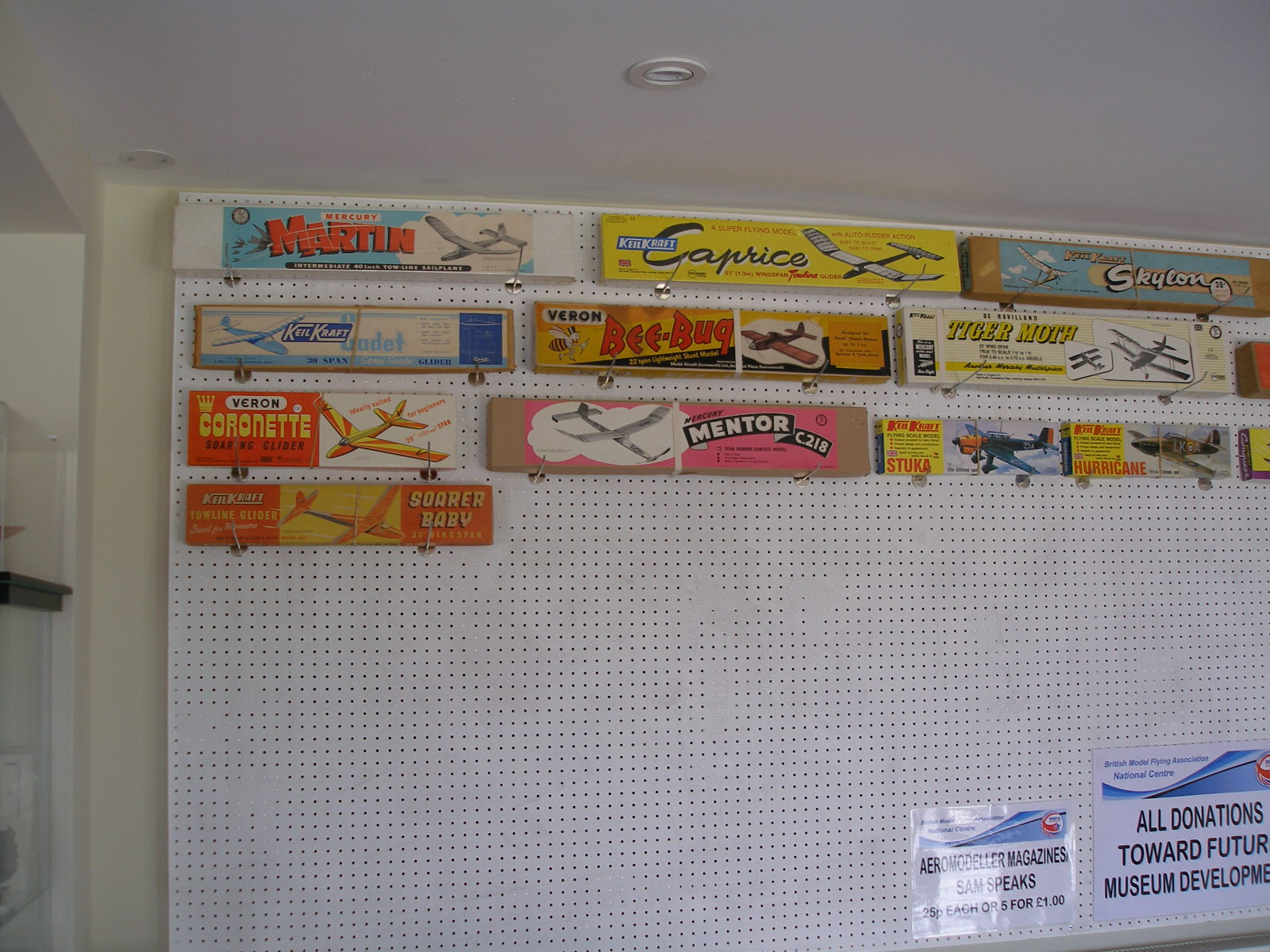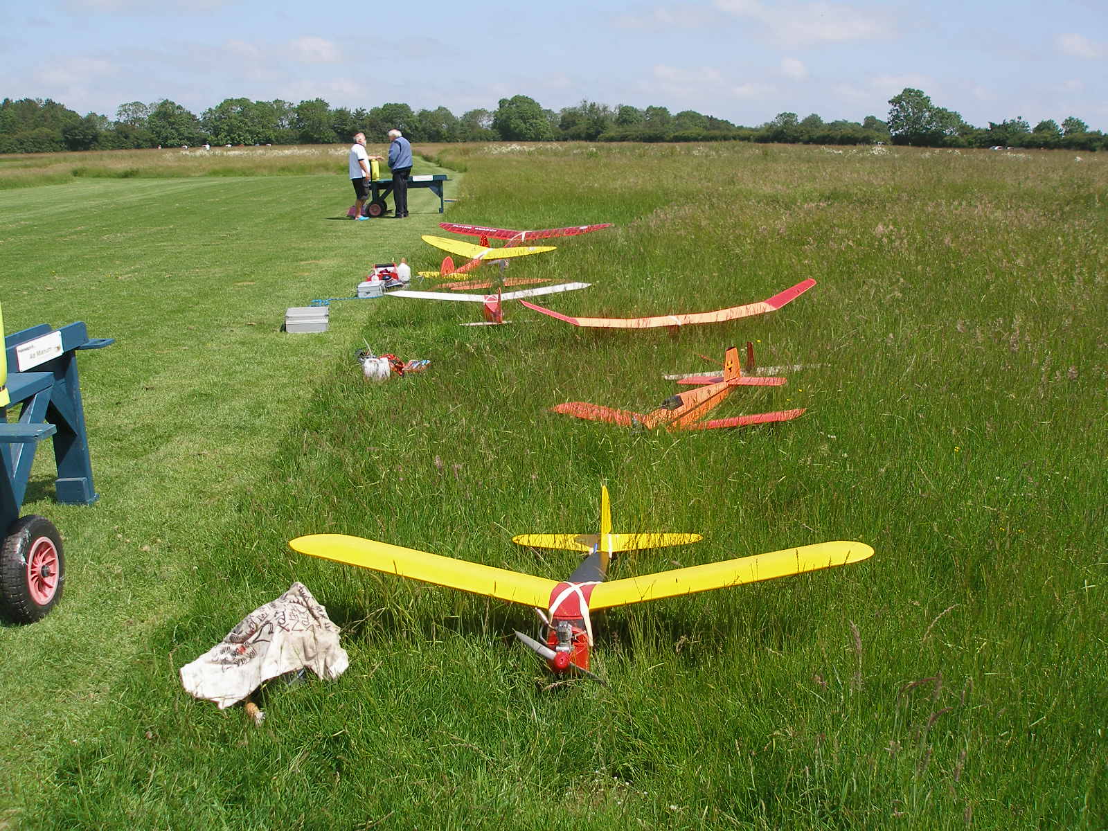 Buckminster By mid-morning there was bright sunshine but with a moderate breeze. Control line was well established, with PMFC persons in action. Then free flight in the lee of the easterly hedge, very comfortable when preparing and sitting chatting but the flying was something of an effort.... In the house Manny and his helpers had a display of retro-kits and motors, kindly supplied from the collection of Jim Kerswell. Tony Beckett |
