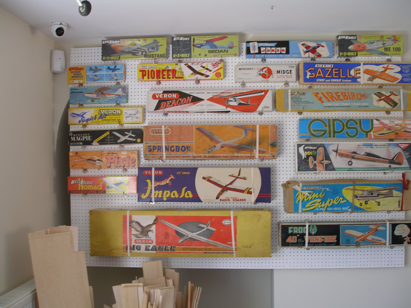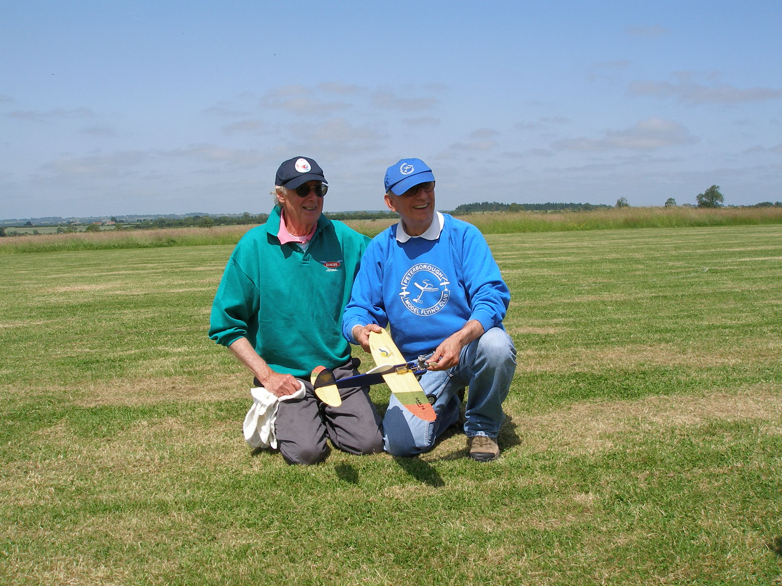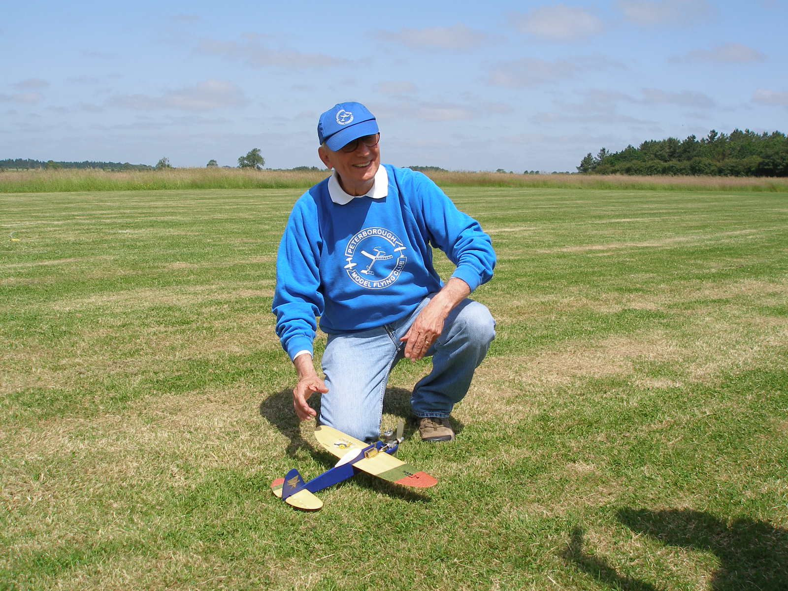 Buckminster By mid-morning there was bright sunshine but with a moderate breeze. Control line was well established, with PMFC persons in action. Then free flight in the lee of the easterly hedge, very comfortable when preparing and sitting chatting but the flying was something of an effort.... In the house Manny and his helpers had a display of retro-kits and motors, kindly supplied from the collection of Jim Kerswell. Tony Beckett |
