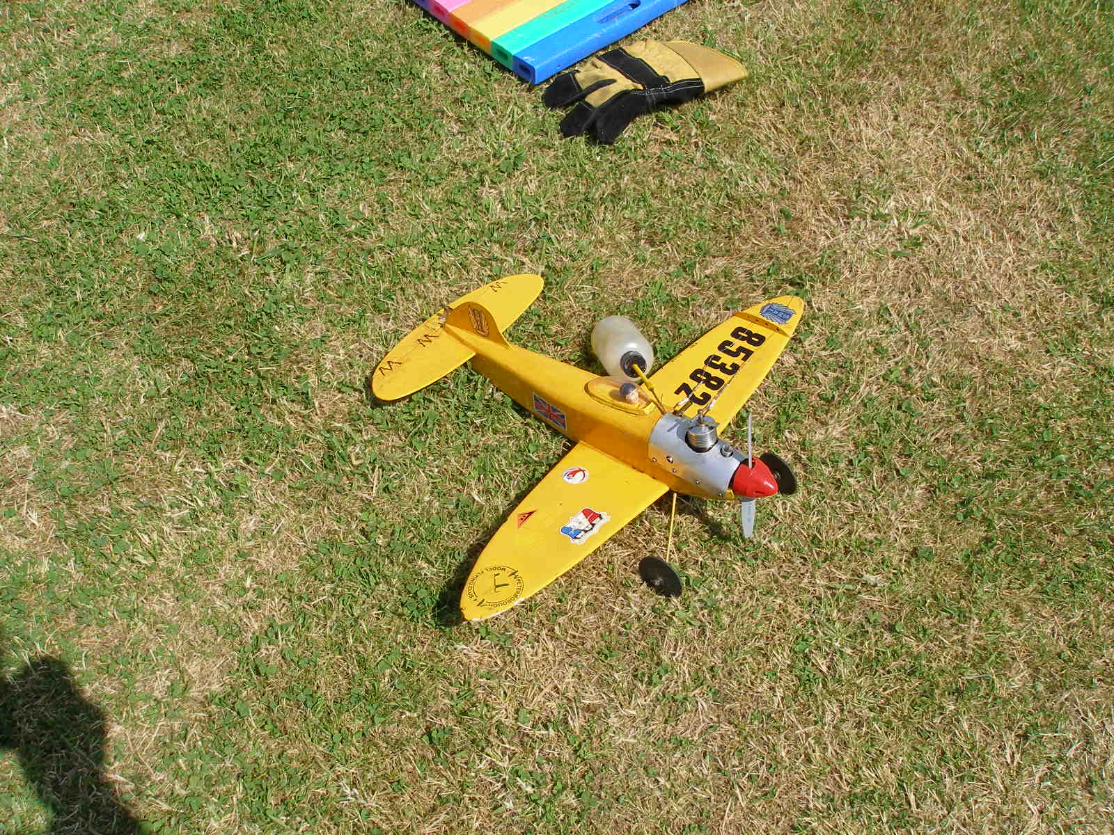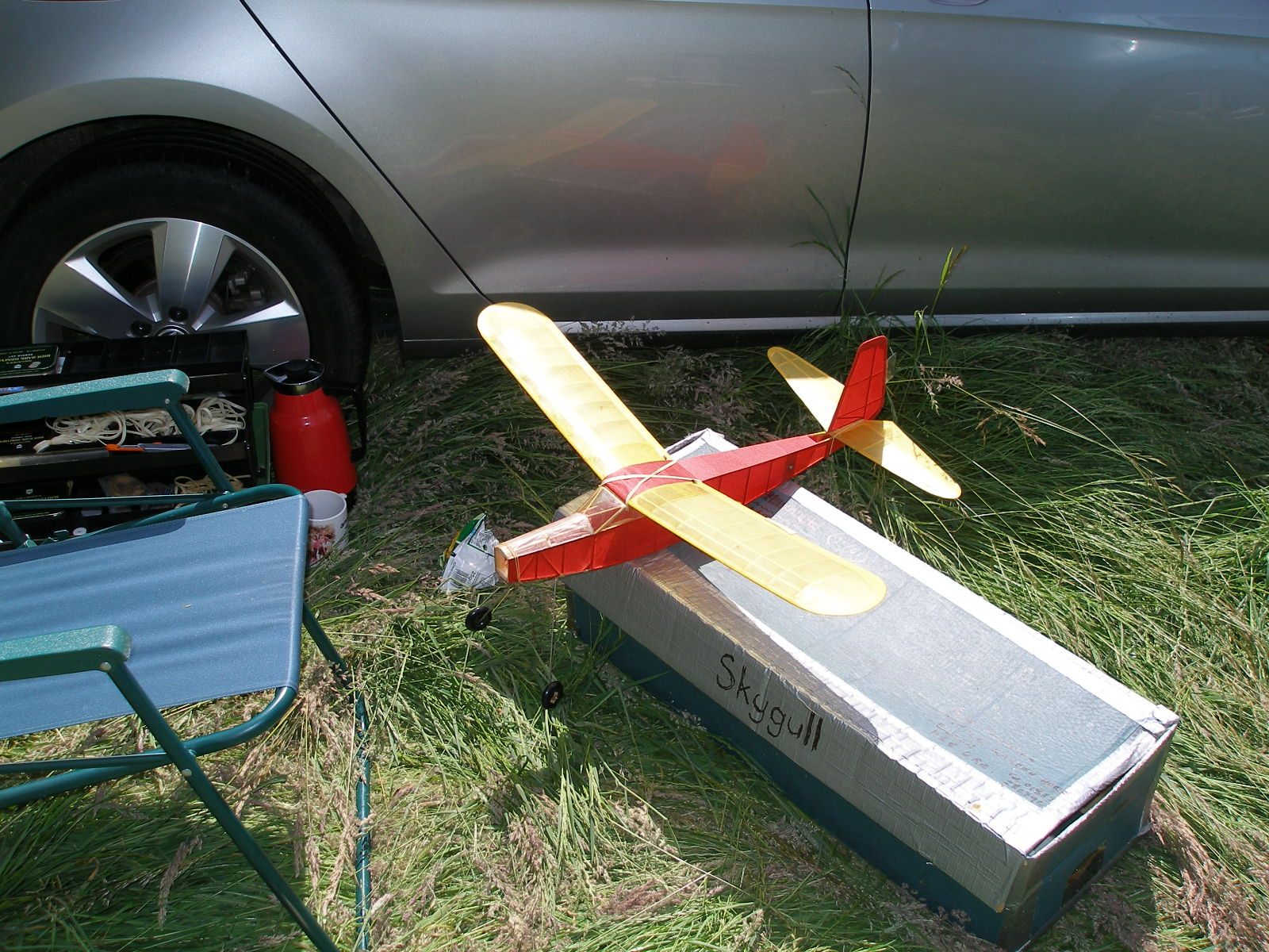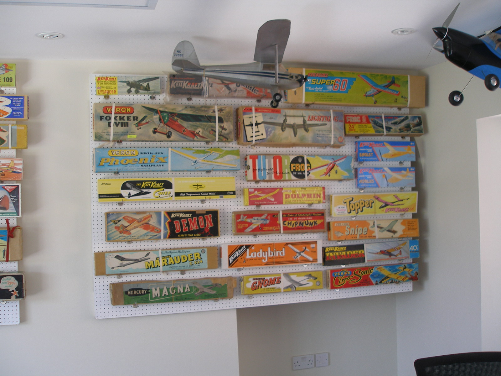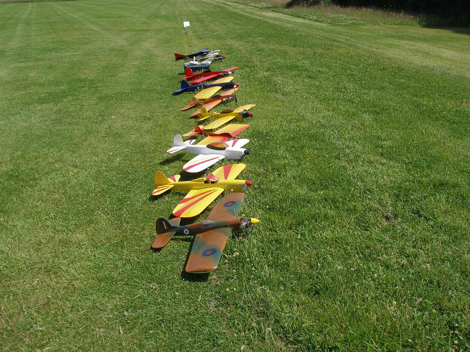 Buckminster By mid-morning there was bright sunshine but with a moderate breeze. Control line was well established, with PMFC persons in action. Then free flight in the lee of the easterly hedge, very comfortable when preparing and sitting chatting but the flying was something of an effort.... In the house Manny and his helpers had a display of retro-kits and motors, kindly supplied from the collection of Jim Kerswell. Tony Beckett |