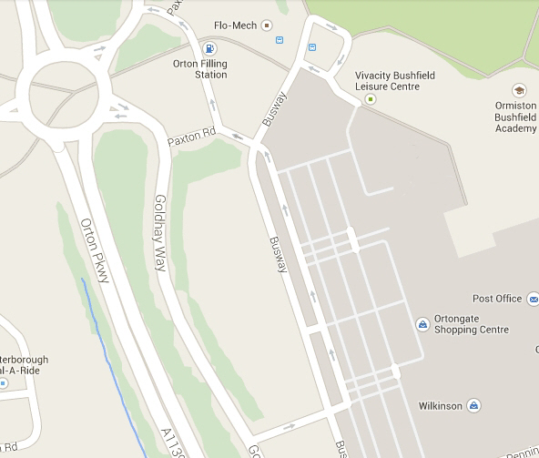 the shopping centre but follow the "Busway" to the back of the Leisure centre