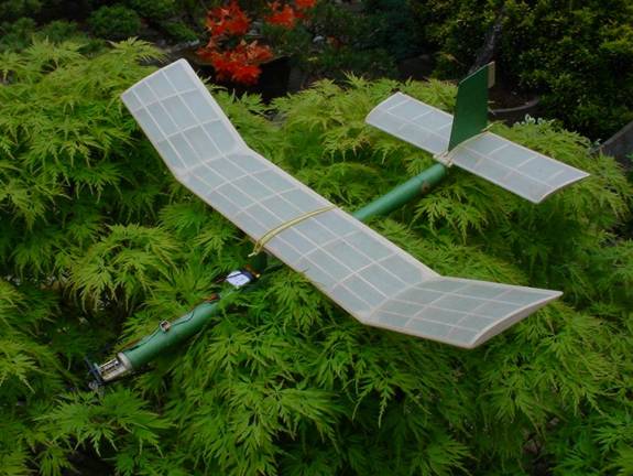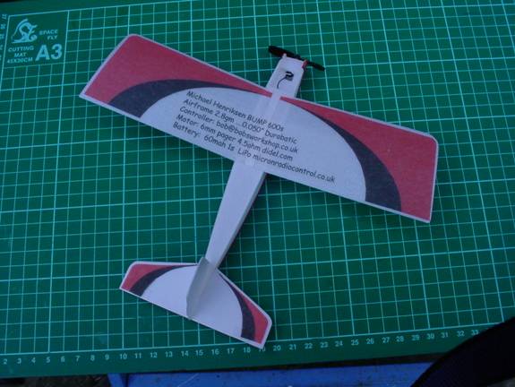 Weight: 12 gm in 2mm depron (outdoor)or 8.5 gms durobatic foam (indoor)
