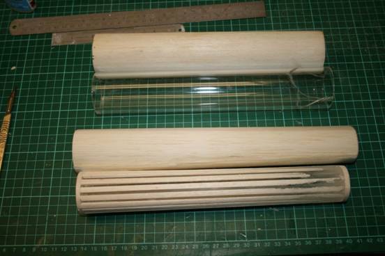 and distortion of the paper ducts. I searched the workshop for suitable formers, 45mm for the