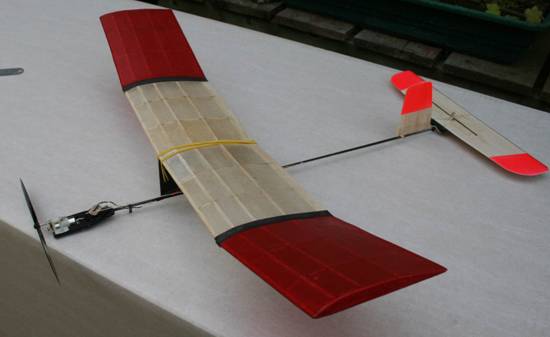 . The US designers are using an 8.5mm Parkzone motor with a 150-200mah single cell .see picture. This is the same power unit that Dave Shipton uses in a 4 ch lightweight RC RTF at Ferry. It might be a Sukhoi (?) and goes like stink? Surprisingly, the US are removing the gearbox and 140mm propeller from this power unit and run a direct drive 2.5 x 1 GWS or Tri-Turbo propeller. I have used the motor/gearbox/propeller intact, weighing 8.5gm . I have not measured current draw but estimate 1.2 -1.5amps. Power unit from Robotbirds part number 403375. Propeller 403356.