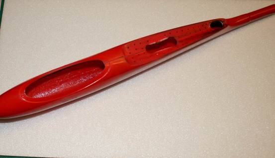 with a substantial glass fibre fuselage and a glassed vacuum bagged blue foam
