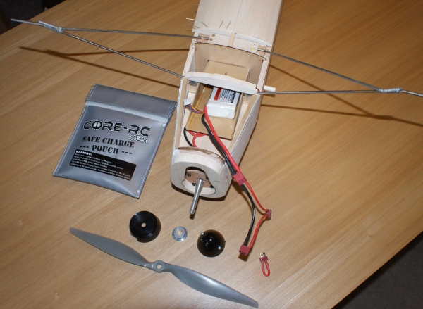Wing was a pleasure to put together: capstrips above and below, two part trailing edge as per the sainted Junior 60. The plan shows wings banded onto the fuselage, but I wish to avoid rubber mounting and instead use wire joiners , of which I had a lot of experience with A2 contest gliders. Consequently, I have purchased a set of joiner clips from DB Sport and Scale, so the wings can't come loose. I was surprised how lightly built the fuselage is, if one adheres to the plan. No upper or lower longerons to support the curved sheeting. Well, there are now! Having been brought up on Meccano, I have an understanding of two - and three- dimensional structures (culminating I the "birdcage" Ferrari sportscar of the sixties) but not of monocoques. I stand to be corrected by the many (too many) ex-engineers among us, but I think this fuselage could be described as a semi-monocoque when fully skinned. Perhaps they used tougher balsa when this was designed. Mounting the wing firmly to the fuselage required an additional former midway down the cabin & some spruce, but the job remains remarkably light. A 'phone call to Balsa Cabin promptly provided twenty lovely sheets of 1/16th balsa, much of which will get used up here. This will be powered by my usual three-cell electric power train, so a battery box forms part of the nose structure. The tail is flat plate, but well designed, like that of the Black Magic, so is very unlikely to warp. Now, how am I going to get any control to those high elevators?