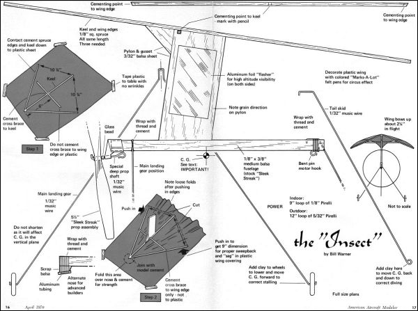 received in December 2014 The Rogallo is from "The Insect" by Bill Warner, a free plan from the "American Aircraft Modeler in April 1970. There is an interesting piece on Wikipedia about the derivation of "Rogallo". If you want a very close to full size version of