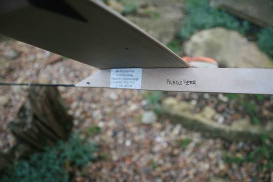 In memoriam for Bernie.. the Sting 21 chuckie he never built Bernie's Sting 21 chuckie kit was sitting sadly on BVW's table at Bushfield one Sunday and I could not resist dropping a few quid to have a go at building it. The plan said 40gm RTF and I am far too old to heave a model of this weight into the air using a javelin chuck. It was also obvious that a legal 2gm of rubber would give a dismal catapult launch and so the Sting was built as a FF dlg with a left climb and right glide. A small underfin was added to give some control to the adverse yaw of this launch method. I am not a great fan of break back fuselages so I used a split horizontal stab as a DT method driven off the viscous timer that Bernie bought from FliteHook (in 2002). The receipt told me that Bernie also bought a 5gm carbon boom for the Sting but this was not present as it had been used elsewhere. I found a length of E36 boom in the depths of the workshop which was used to fabricate the fuselage.