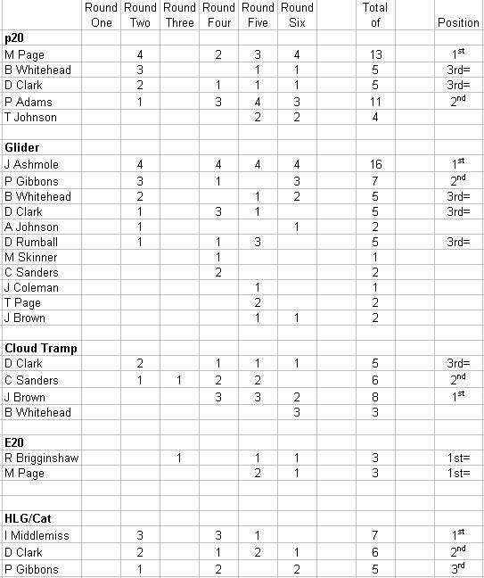 PMFC placings only (ie, ignoring all other competitors.) They should include