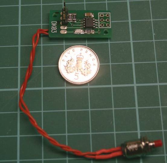 The reverse side of the programming unit showing an 18 pin PICAXE chip mounted on a commercial(?) PCB. Top right is a jack socket which can be connected to a USB port on a PC to download new software to the controller should the occasion demand. This is not something that the end user has to do, just a nice feature provided by the developer with 'future proofing' in mind. I.e software changes are easy.