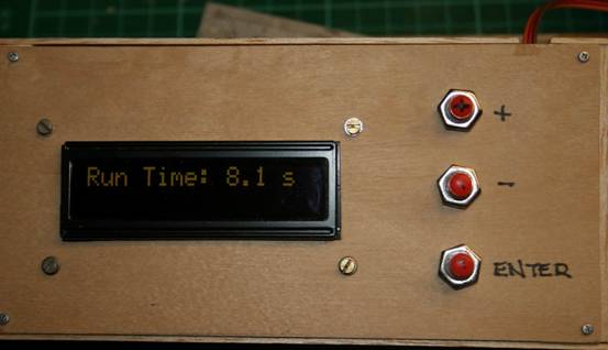 A New Motor Run Electronic Controller with DT and auto surface functions for Free Flight Competition and Sport Models Introduction: This controller has been designed, developed and fabricated by Dan Kennedy (F5D) with the added assistance of seasoned competitor Peter Tolhurst (E30,E36, BMFA Electric). The functionality includes motor load and motor run time control with VIT, AR, wiggler and DT ability via a single servo and release levers. The controller comes as a 16 character 2 line led progamming unit and a controller with a start switch mounted on a fly lead. Prices as of August 2013 are £25 and £17 respectively. I hardly need to add that you only buy the programming unit once ? What's in the box?