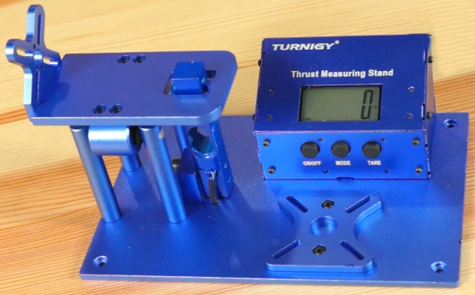 Turnigy Test Stand from HobbyKing I had always thought of HobbyKing as an internet rtf box shifter but that is not the case. With the test stand you get a couple of engine mounts for different size electric motors. The plate at the top of the rig is constrained by a pair of linear bearings to allow horizontal motion, with the vertical member at the rear being a mount for a strain gauge. The conditioning amplifier is housed in the box on the right and I assume that the readout will be thrust. Allegedly, the device reads to 5kg , which is way more than we would sensibly use. 400-450gm would be a hot FF E36 motor and 1.5kg would be a monster 180gm motor for a 100" span 6lb vintage RC RE model. Seems affordable at £35. To complete the rig, all you would need would be a Watt meter and a laser rev counter. Its the sort of kit that the club might to purchase to keep under the stage at Peakirk to test motors/props/batteries. The price in December 2014 was £33.15