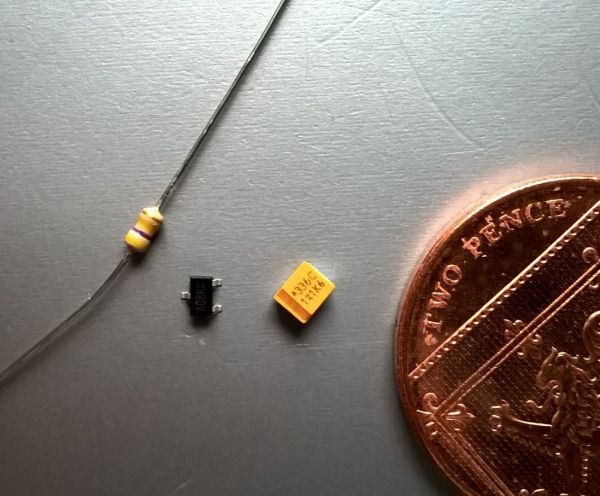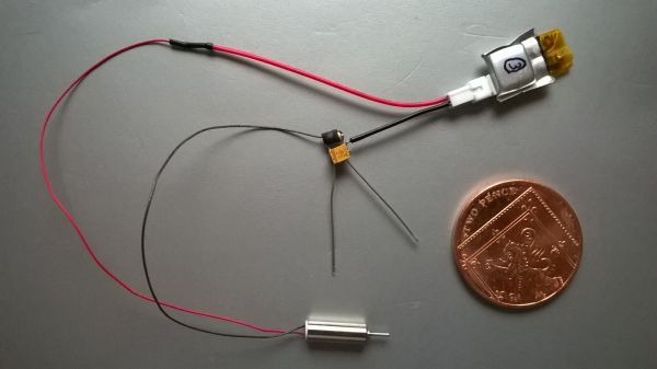 Miniaturising FET Timers Ive been seeing how small I can go with a Peterborough FET timer for micro indoor electric free flight. I know Ian experimented with this because I found some of the tiny FETs in his stock. The best I have done so far is shown below. A 4mm micro heli tail rotor motor, timer and lipo for a total of 1.85g. The motor weighs 0.75g. The battery (0.6g) was bought as a 30mAh from china on Ebay, although Ive been told its more like 15mAh in practice. I removed the PCM (charge/discharge protection) circuit and added a micro JST connector.