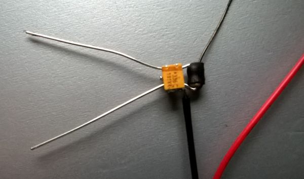 The timer uses a surface mount AO3034 FET (click for data sheet). Its rated for 4 amps current but the real limiting factor is a Power Dissipation of 1.4 watts -equating to 350mA current at 4V. This is probably about right for the 4mm motor. The major hurdle to overcome is soldering such tiny components and the fragility of the solder-to-wire joints. To overcome this I ran the drain wire through a small piece of heatshrink on the resistor which should take mechanical loads off the solder joint. The female JST connector on the timer weighs 0.2g.